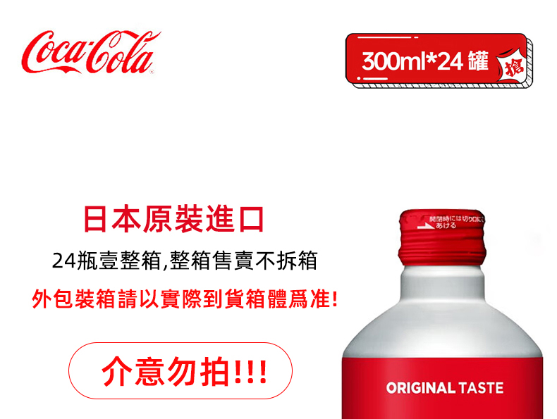 可口可樂(Coca-Cola)日本原裝進口 經典紅罐 碳酸飲料 鋁罐包裝 500ml*24瓶台灣同城配送